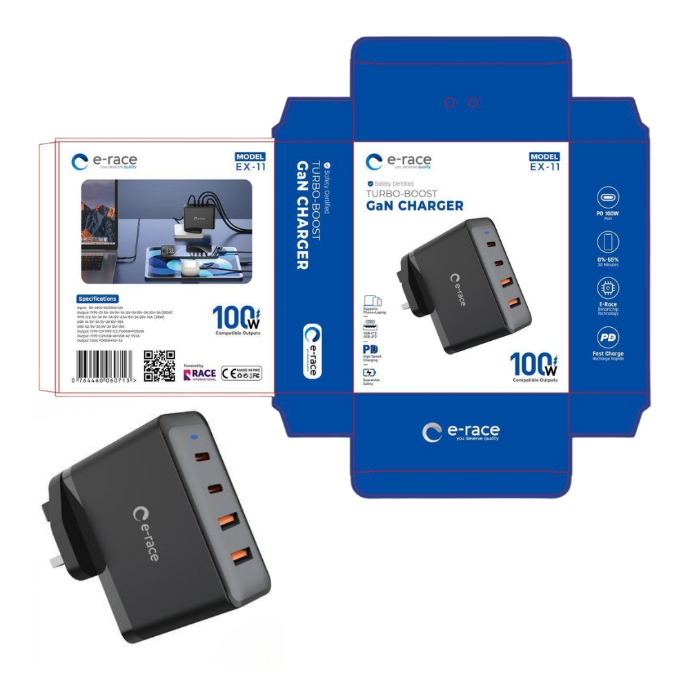 E-Race 100W TURBO BOOST GaN CHARGER | EX-11 | 1YEAR WARRANTY...