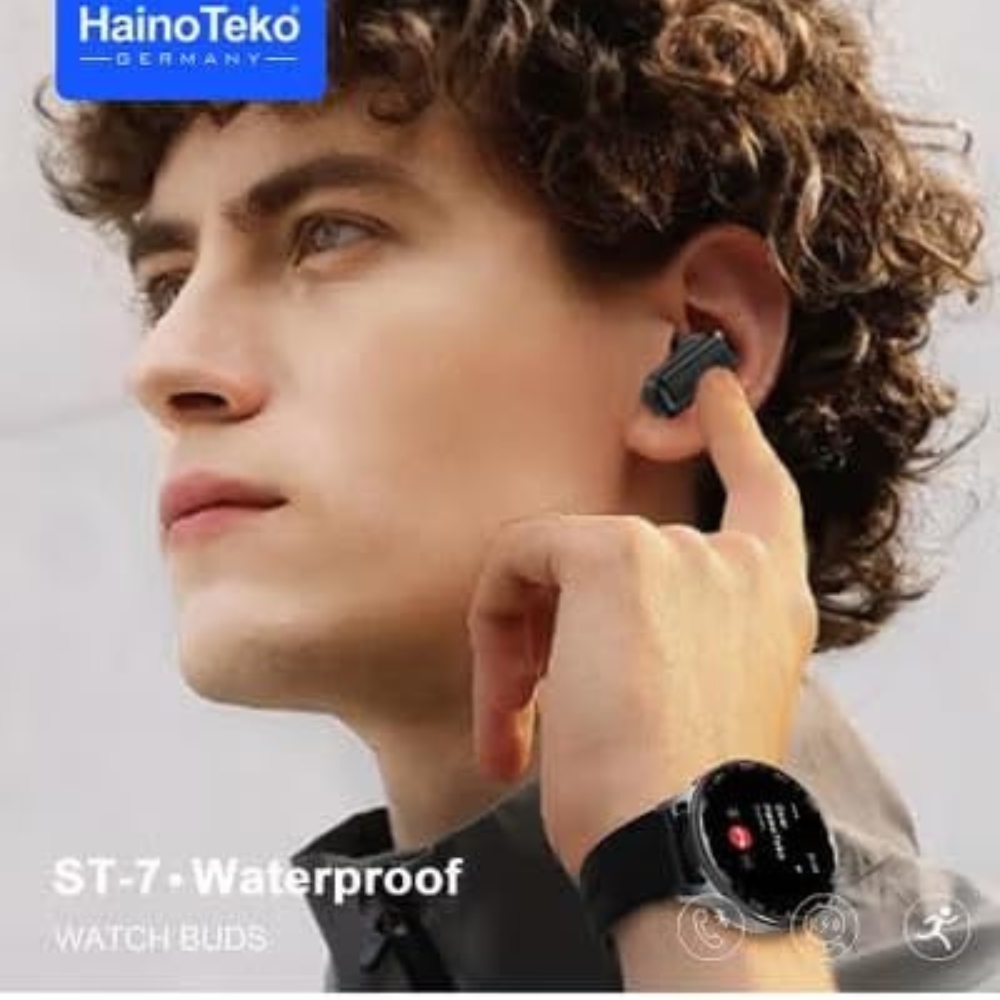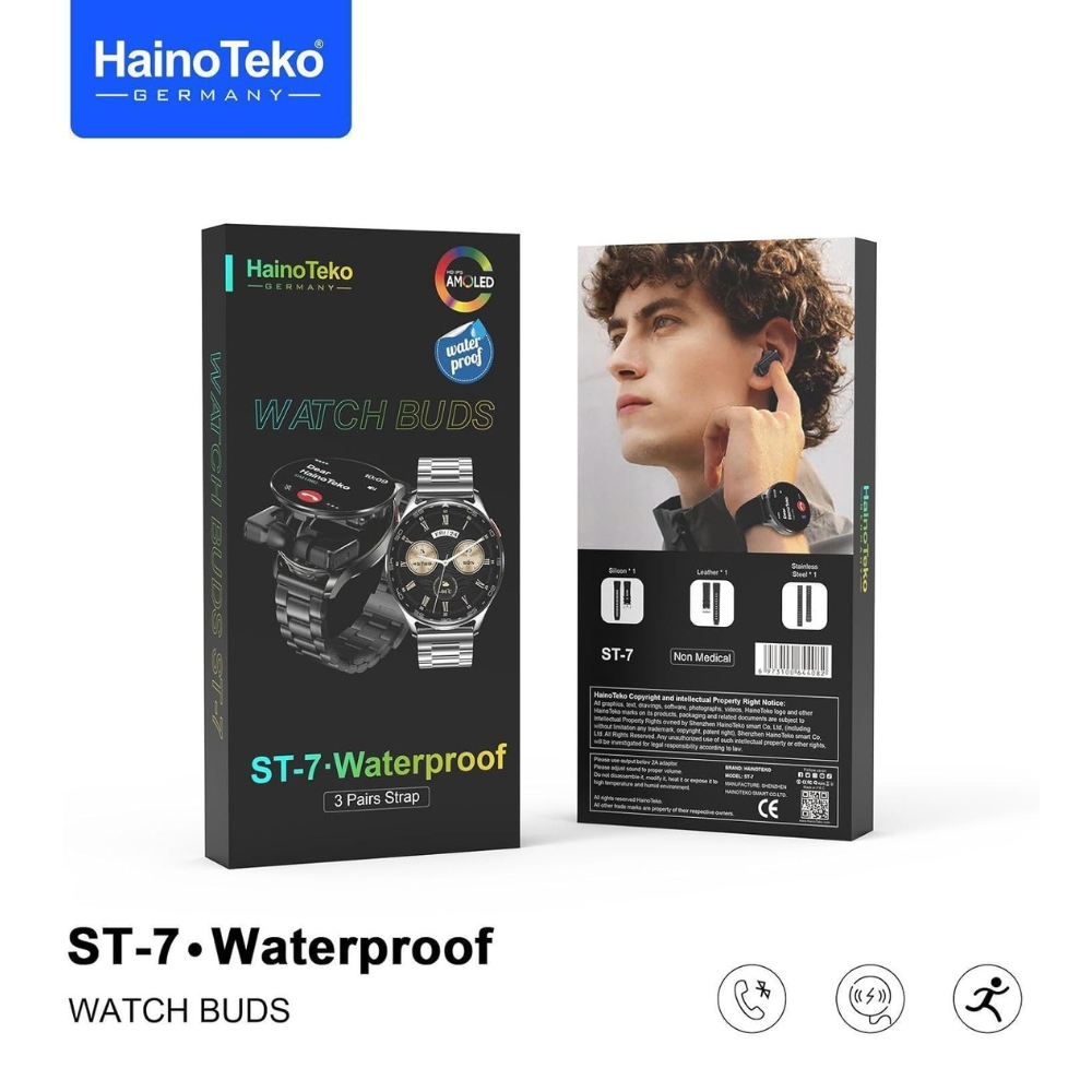 HainoTeko ST-7 Waterproof SmartWatch with Integrated Earbuds Large Screen AMOLED Display 3 Pair Stra...