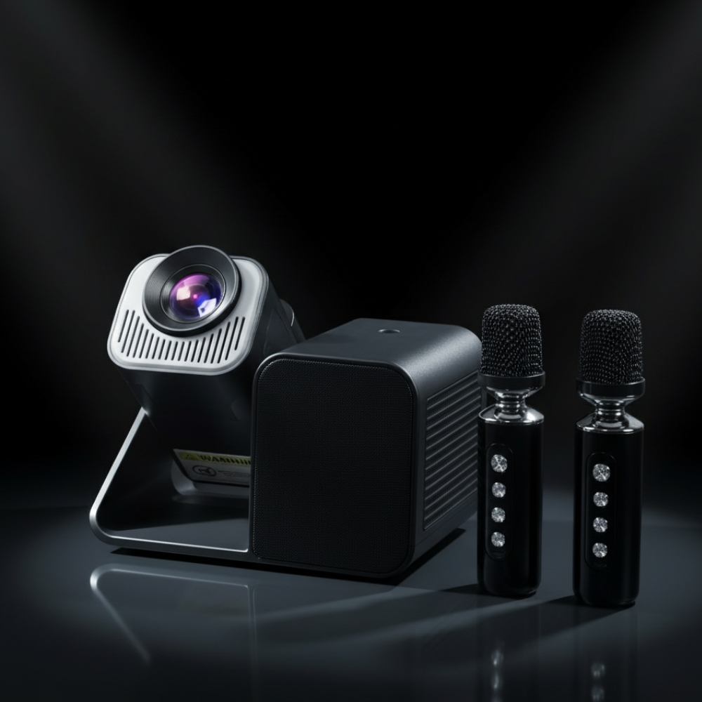 The HT36 features manual focusing, requiring the user to adjust the lens physically for a sharp image. Some versions are designed as 3-in-1 devices, functioning as a projector, speaker, and karaoke system. These versions may include a rotating base and built-in microphones for entertainment use.